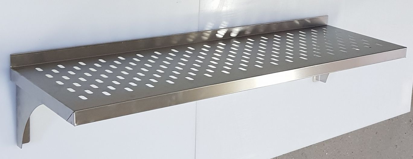 Inox bútorok és hústőkék - 1000x300-as rozsdamentes acél, (csepegtető) perforált falipolc konzollal