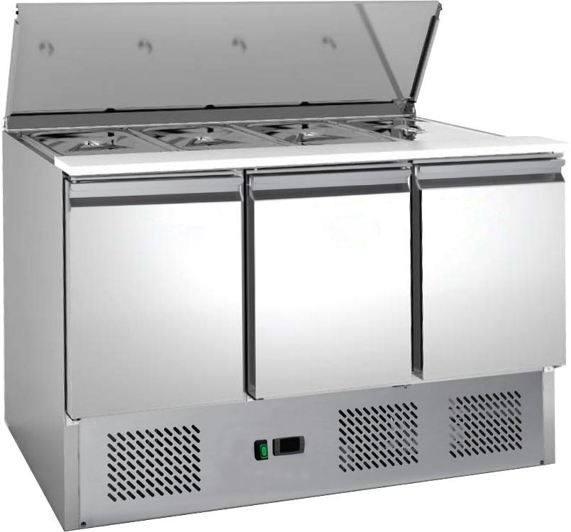 SALÁTATÁLALÓ HŰTŐPULT 3 db cellajtóval, ventilációs hűtéssel,