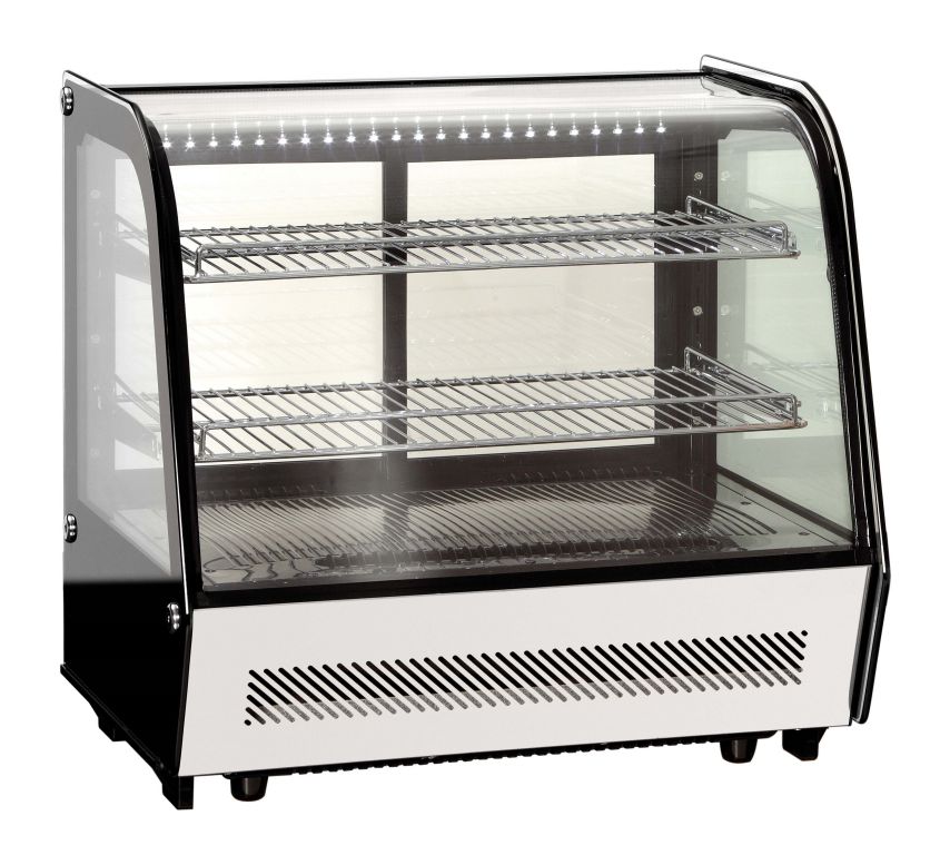 A pultra helyezhető hajlított üvegű, fűtött bemutatóvitrinek LED
