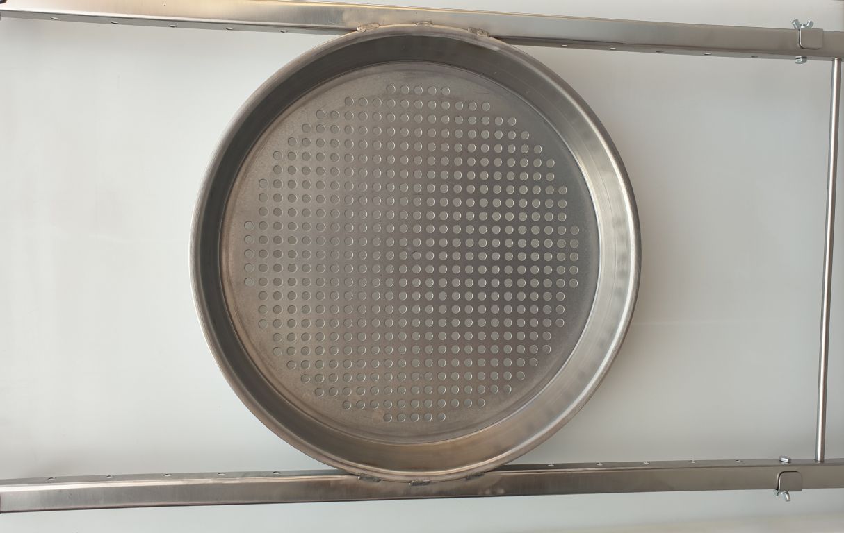 Rozsdamentes ipari galuskaszaggató. Nagy konyhai edényekre, fazekakra használható. Hossza: 105,5cm Szélessége: 47cm Átmérő: 43,5cm