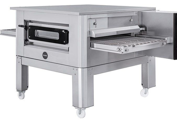 Elektromos fűtésű egyaknás, digitális vezérlésű, légkeveréses, alagút rendszerű pizzakemence, gördíthető alépítménnyel, akár 50-es pizza sütésére is alkalmas, rozsdamentes acél burkolat, formatervezet fogantyúval, rm. lenyitható ajtó, 60-320 C° külön szabályozható, alsó-felső fűtőbetéttel, kamraméret: 50×75×10cm Teljesítmény: 14,2 kW /400V Mérete: 186x121x50 cm +alépítmény, súly: 255 kg