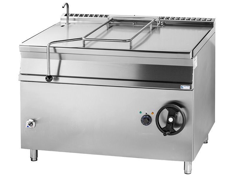 120 literes elektromos billenőserpenyő - kézi billentés - vízfeltöltő csap - szénacél fenék