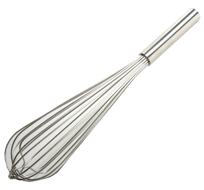 Rozsdamentes acélból készült cukrászati kellék (habverő), krémekhez, habokhoz, 8 szálas, 40 cm. Felakasztható.